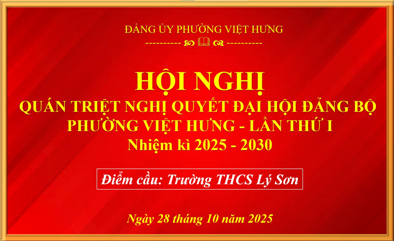 Sáng nay, ngày 28 tháng 10 năm 2025, Đảng ủy phường Việt Hưng tổ chức Hội nghị quán triệt Nghị quyết Đại hội Đảng bộ Phường lần thứ I, nhiệm kỳ 2025 – 2030 và triển khai 04 chương trình công tác toàn khóa.