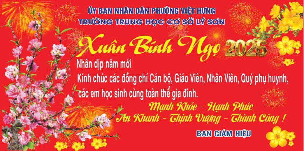 Nhân dịp năm mới, Trường THCS Lý Sơn xin gửi tới các đồng chí Cán bộ, Giáo viên, Nhân viên, Quý phụ huynh và các em học sinh cùng toàn thể gia đình lời chúc tốt đẹp nhất!