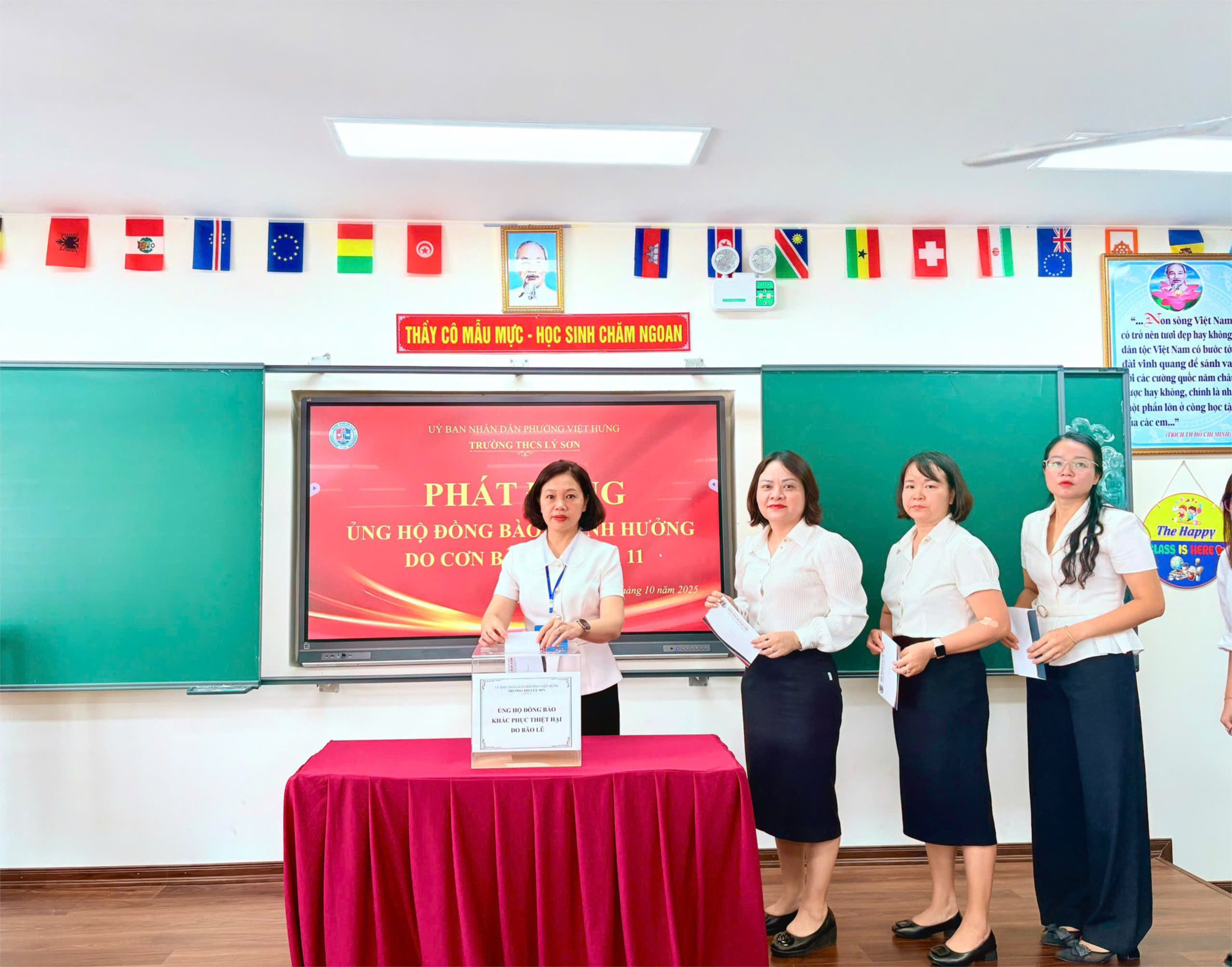 Điểm đặc biệt trong buổi lễ chào cờ lần này là hoạt động hướng về đồng bào miền Bắc đang chịu ảnh hưởng nặng nề của cơn bão số 10 và số 11 vừa qua. Những cơn mưa lớn kéo dài đã gây thiệt hại nghiêm trọng về tài sản, cơ sở vật chất, trong đó có nhiều trường học và gia đình học sinh bị ảnh hưởng. Trước tình hình đó, hưởng ứng lời kêu gọi của Uỷ ban Mặt trận Tổ Quốc, tập thể giáo viên, cán bộ, nhân viên và toàn thể học sinh trường THCS Lý Sơn đã đồng lòng tham gia chương trình quyên góp, ủng hộ sách vở, đồ dùng học tập, quần áo và tiền mặt để gửi đến các bạn học sinh vùng lũ.