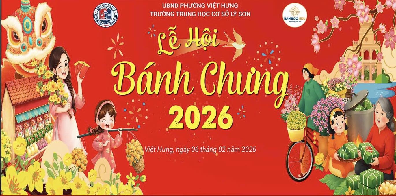 Sáng ngày 06/02/2026, sân trường THCS Lý Sơn rộn ràng không khí Tết khi chương trình Vui Hội Bánh Chưng 2026 diễn ra, mang đến một ngày trải nghiệm vui vẻ, ý nghĩa cho học sinh.