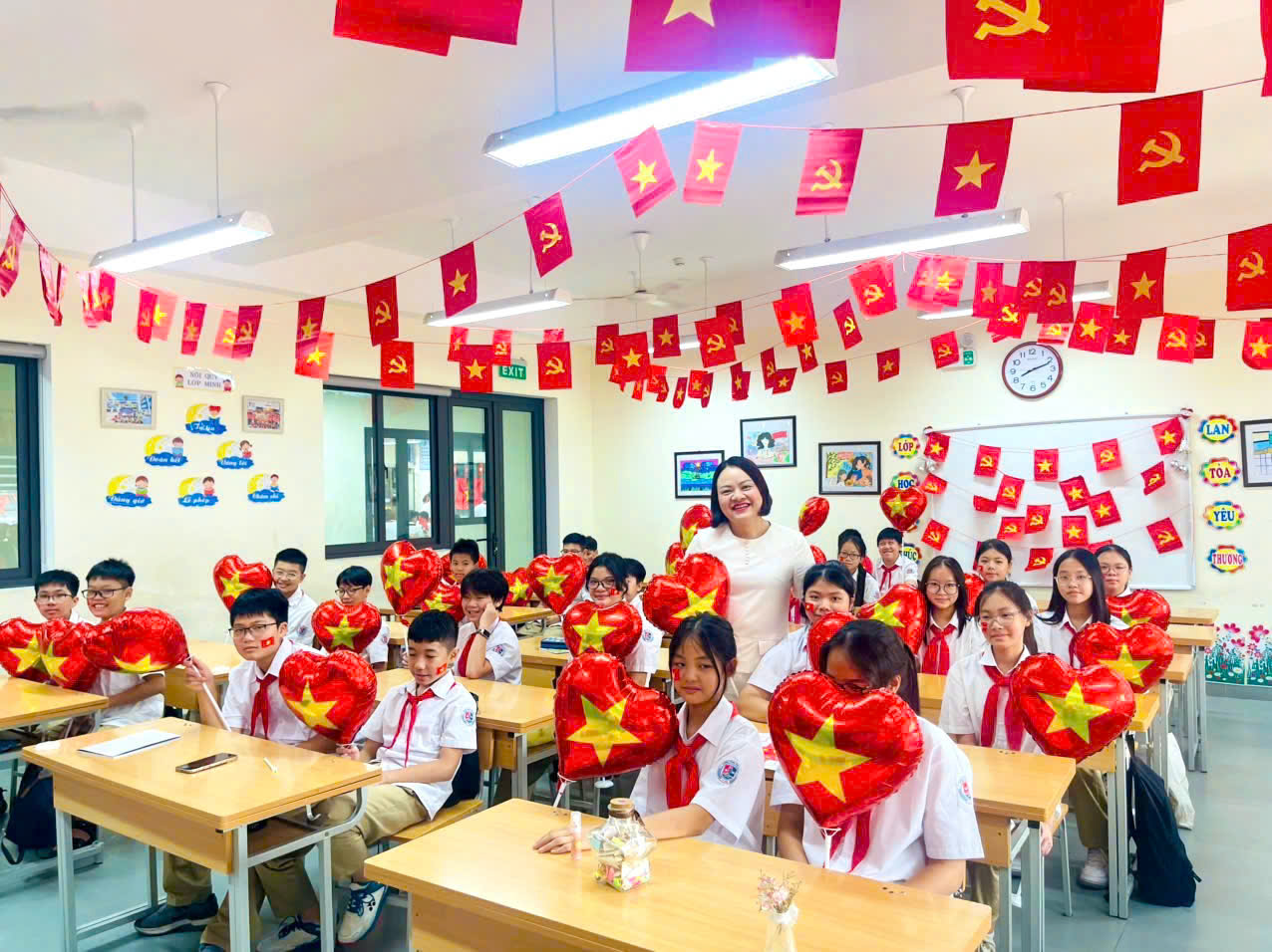 Trong những ngày thu lịch sử, khi cả nước hân hoan hướng về kỷ niệm 80 năm Quốc khánh nước Cộng hòa xã hội chủ nghĩa Việt Nam (02/9/1945 – 02/9/2025), trường THCS Lý Sơn được “nhuộm đỏ” bởi sắc cờ Tổ quốc, khoác lên mình “tấm áo mới” mang dáng hình đất nước thân thương. Từ sân trường, hành lang đến từng lớp học, đâu đâu cũng thắm màu cờ đỏ sao vàng.