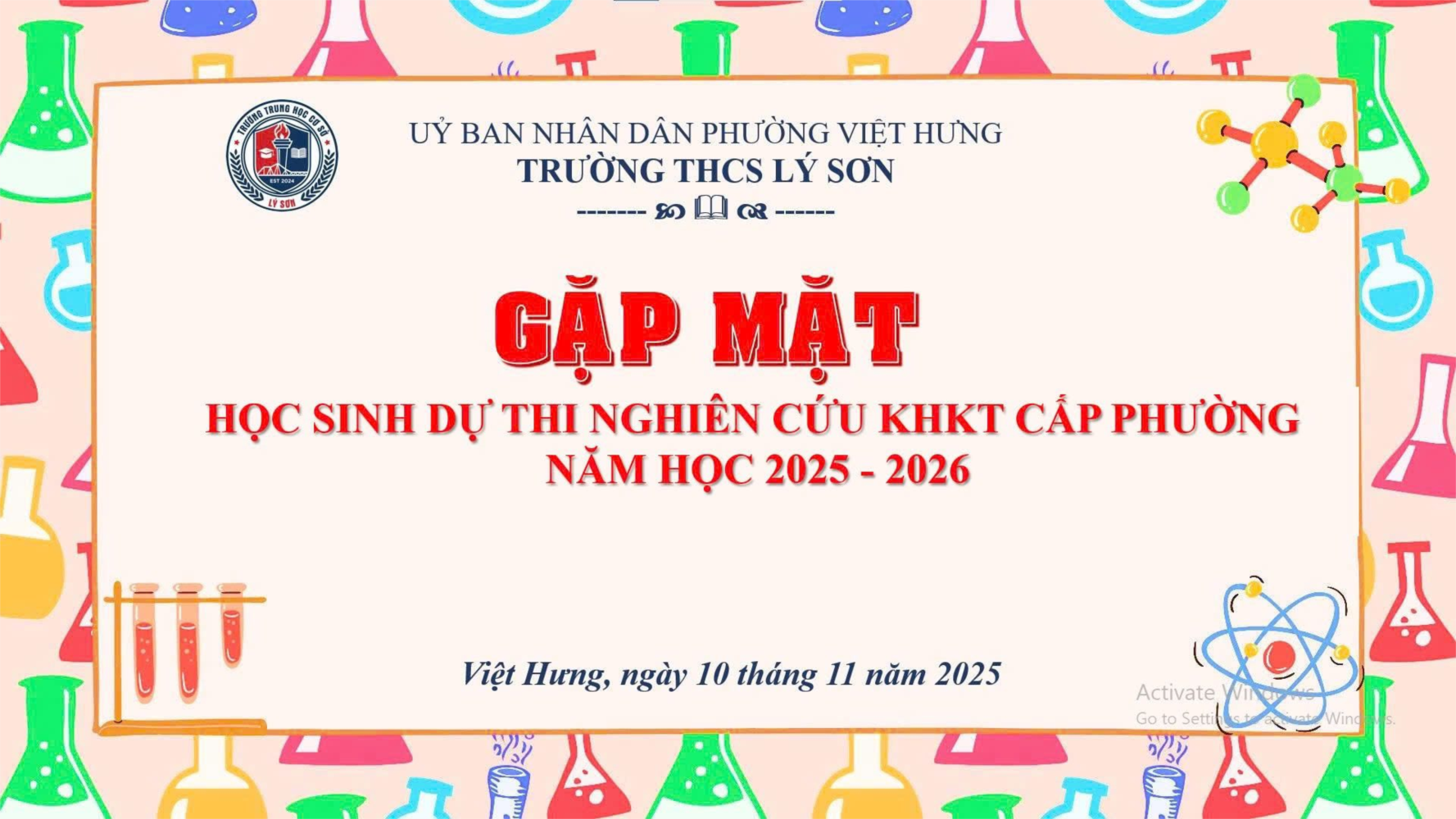 Sáng nay 10/11/2025, trường THCS Lý Sơn đã tổ chức buổi gặp mặt, động viên học sinh tham gia cuộc thi Nghiên cứu khoa học kỹ thuật cấp phường năm học 2025–2026.