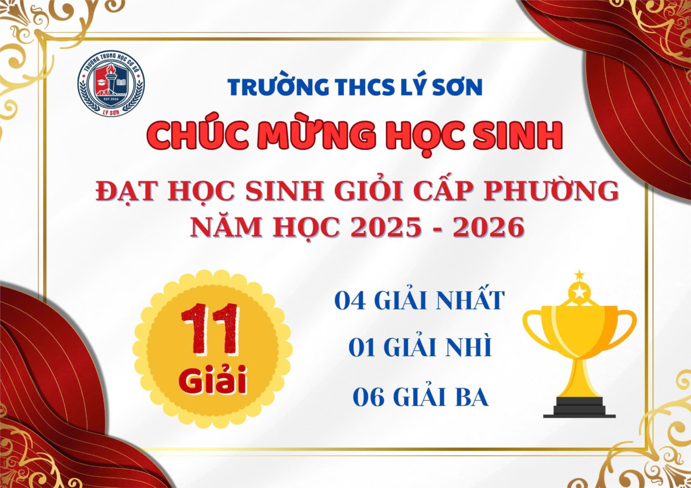 Năm học 2025 – 2026 đánh dấu một cột mốc đặc biệt khi trường THCS Lý Sơn có khóa học sinh lớp 9 đầu tiên với 2 lớp học. Bằng sự nỗ lực của các trò, sự tận tâm, yêu nghề của các thầy cô giáo, sự quan tâm của BGH nhà trường và sự phối hợp đồng hành của quý phụ huynh, trong kỳ thi học sinh giỏi cấp phường đội tuyển học sinh giỏi của trường THCS Lý Sơn đã xuất sắc mang về 11 giải, bao gồm: