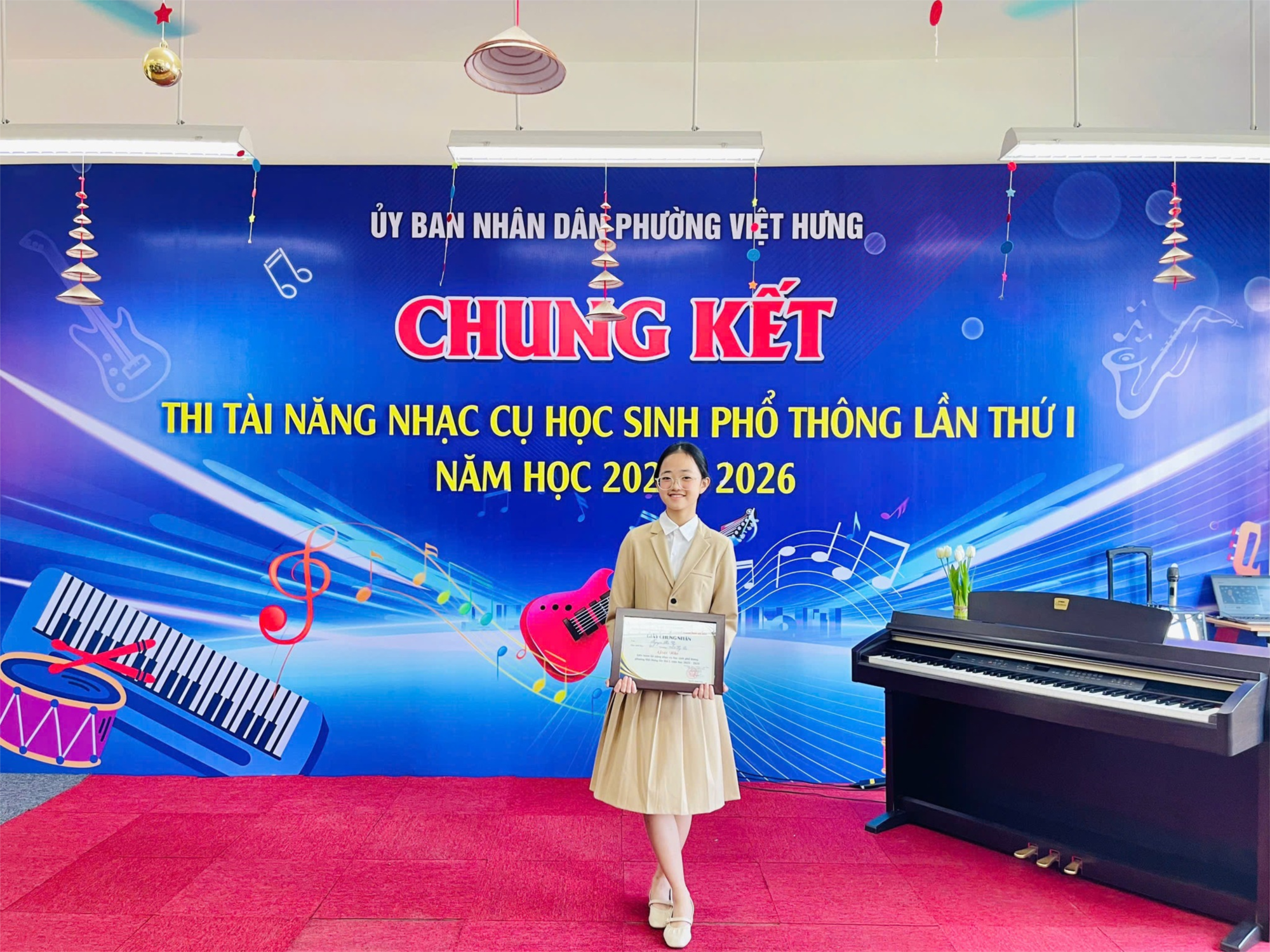 Sáng ngày 15/11/2025, tại Liên hoan Tài năng Nhạc cụ học sinh phường Việt Hưng lần thứ I – năm học 2025–2026, em Nguyễn Hà Vy – học sinh lớp 8A2, trường THCS Lý Sơn – đã mang đến phần trình diễn piano đầy cảm xúc.